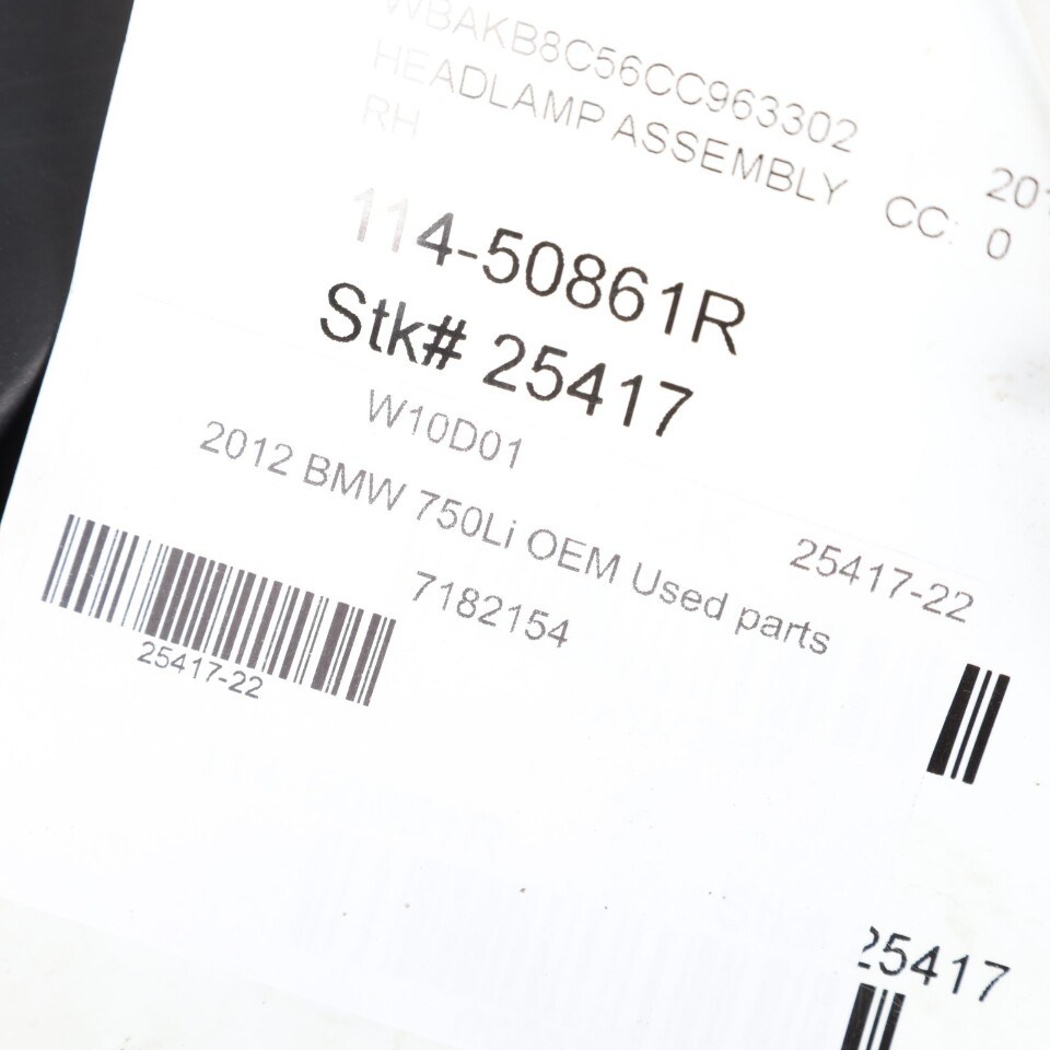 2009-2012 BMW 740i 750i Right Xenon Headlight w/o Adaptive 63117228424 OEM