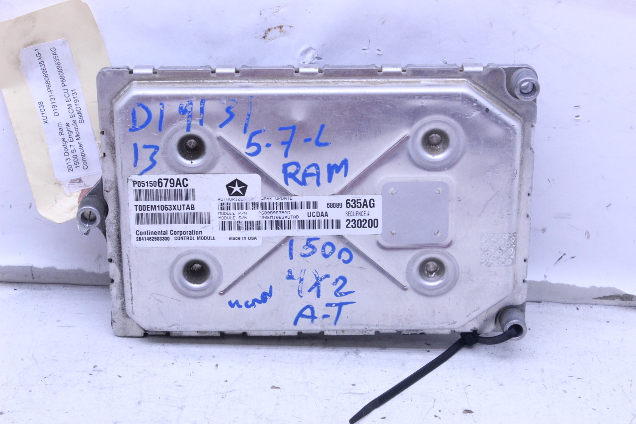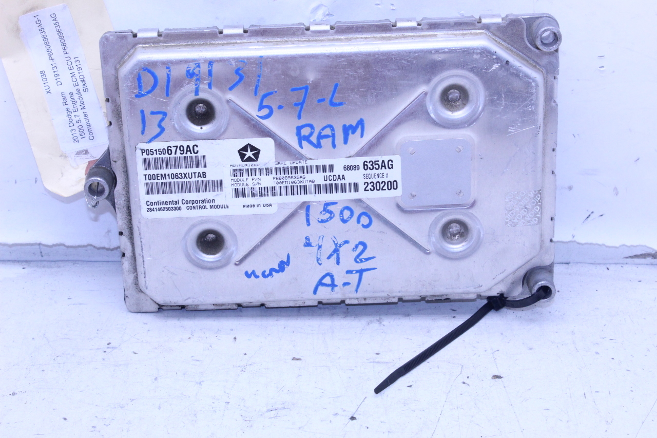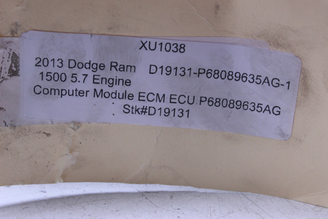 Specialized German is proud to offer this genuine used OEM 2013 Dodge Engine Computer Module with OEM part number 68089635AG. Other possible part numbers include P68089635AG; 68089635. Please verify compatibility with your VIN or consult your technician before purchase.