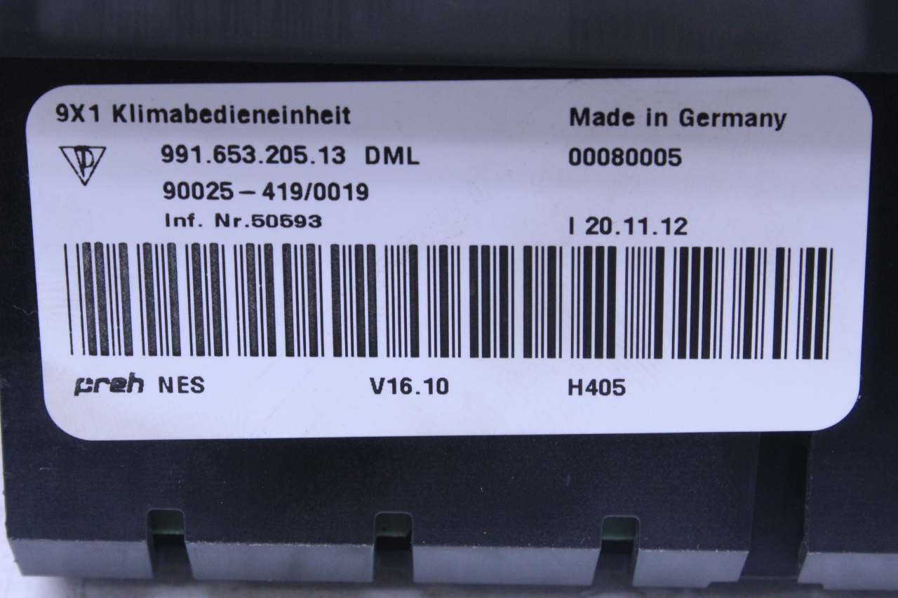 Specialized German is proud to offer this genuine used OEM 2013 Porsche Temperature Control Panel with OEM part number 99165320513. Other possible part numbers include 99165320513; 99165320513DML. Please verify compatibility with your VIN or consult your technician before purchase.