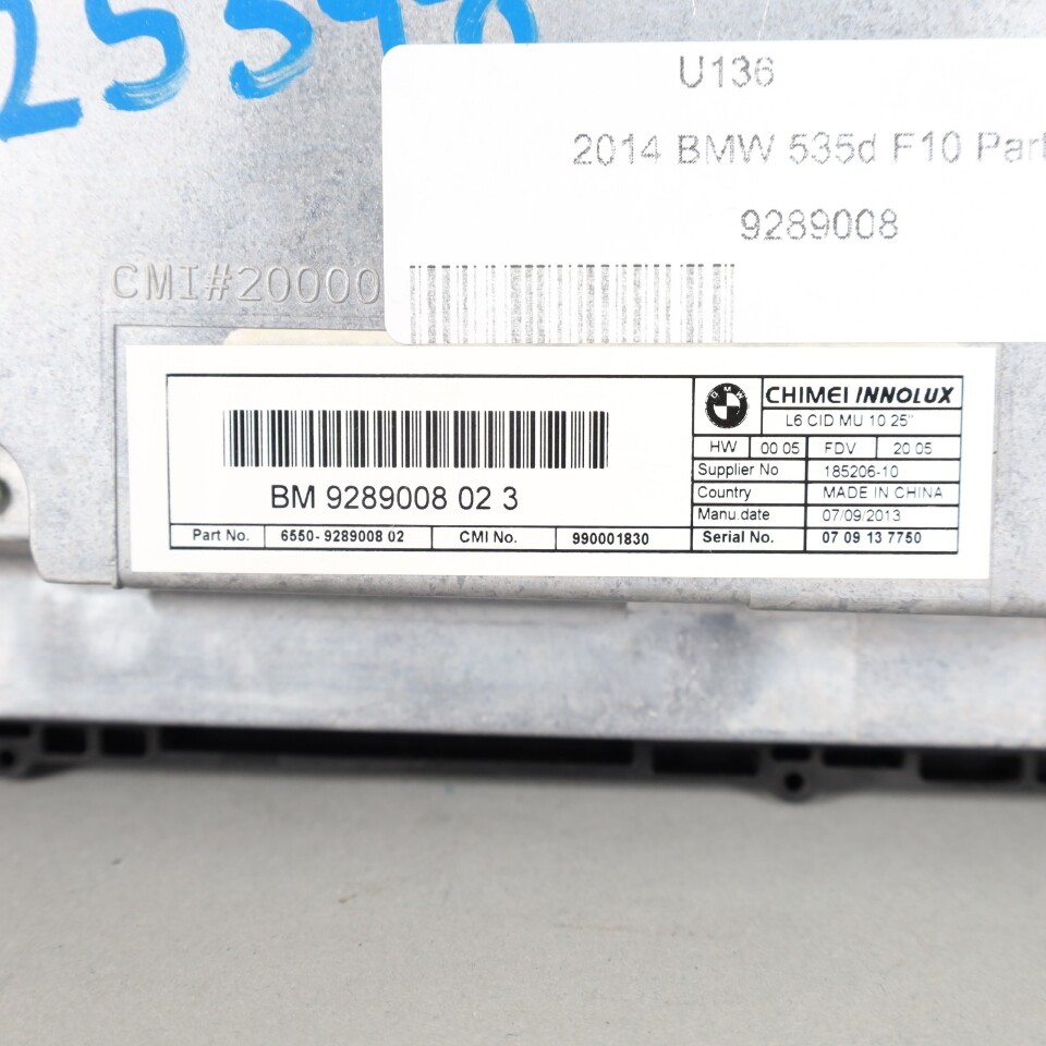 2011-2016 BMW 528i 535i 550i Central Display Screen 10.25 65509289008 OEM