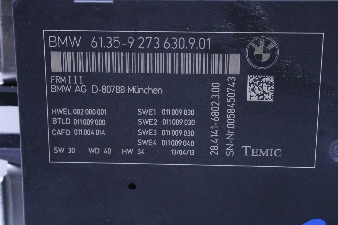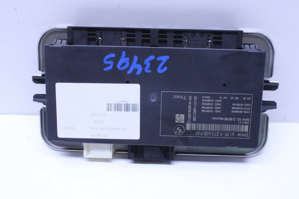 Specialized German is proud to offer this genuine used OEM 2014 BMW Footwell Module with OEM part number 61359273630. Other possible part numbers include 9273630; 61359273630; 61356992947. Please verify compatibility with your VIN or consult your technician before purchase.