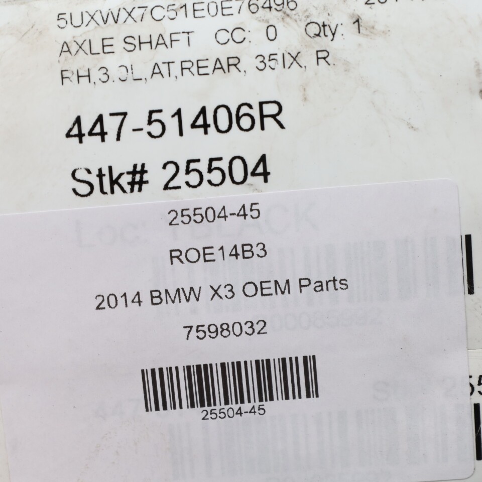 2011-2017 BMW X3 3.0 Right Rear Axle Shaft CV Joint 33207598032 OEM