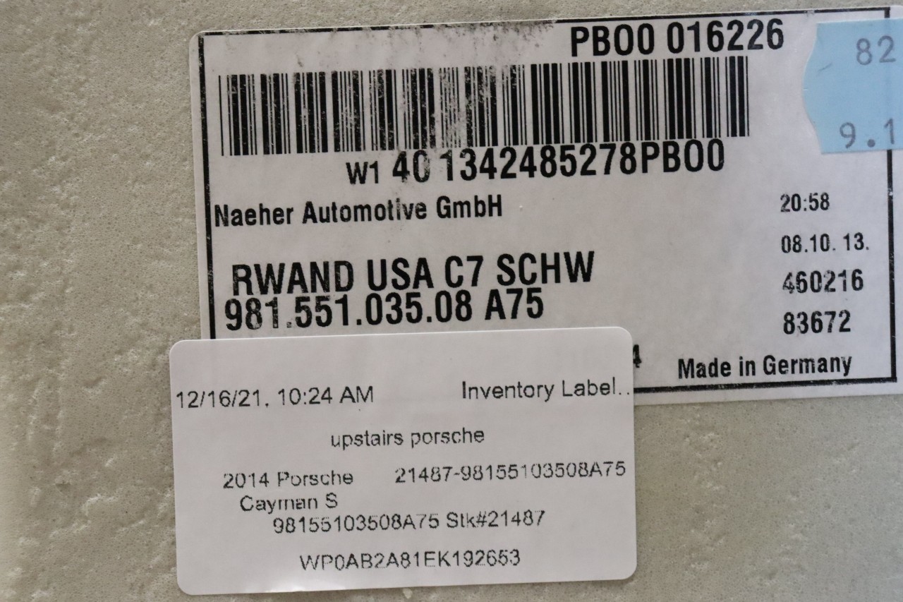 2014 2015 2016 Porsche Cayman 981 Seat Back Engine Cover Carpet 98155103508 OEM