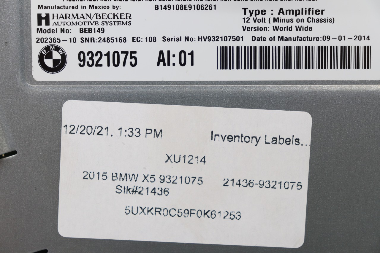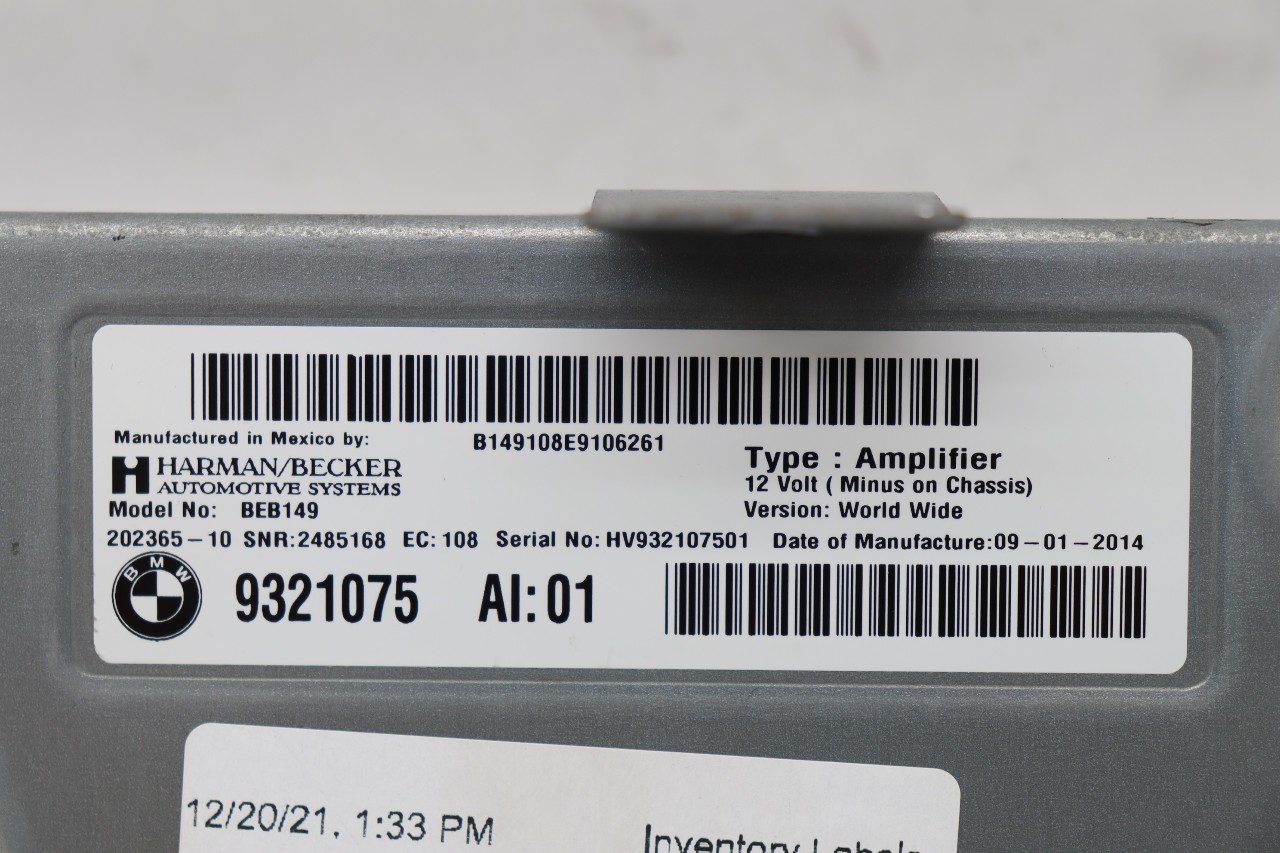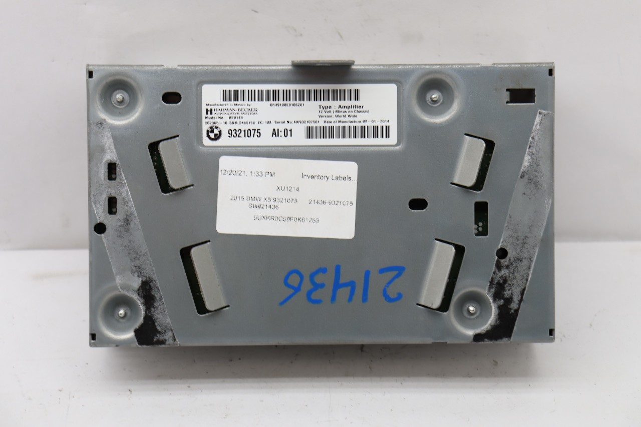 Specialized German is proud to offer this genuine used OEM 2015 BMW Amplifier with OEM part number 65129321075. Other possible part numbers include 9321075; 65129321075. Please verify compatibility with your VIN or consult your technician before purchase.