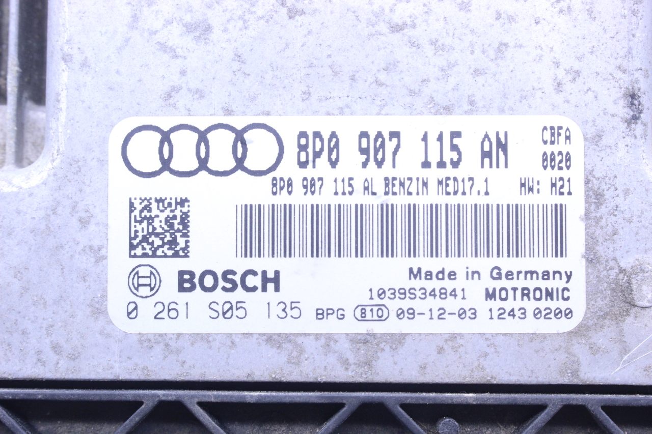 Specialized German is proud to offer this genuine used OEM 2010 Audi Engine Computer Module with OEM part number 8P0907115AN. Other possible part numbers include 8P0907115AN; 8P0907115AT. Please verify compatibility with your VIN or consult your technician before purchase.