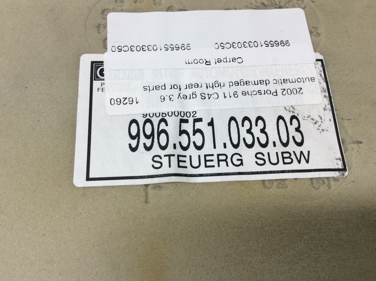 Specialized German is proud to offer this genuine used OEM 2002 Porsche Rear Shelf Carpet with OEM part number 99655103303. Other possible part numbers include 99655103303; 99655103303C50. Please verify compatibility with your VIN or consult your technician before purchase.
