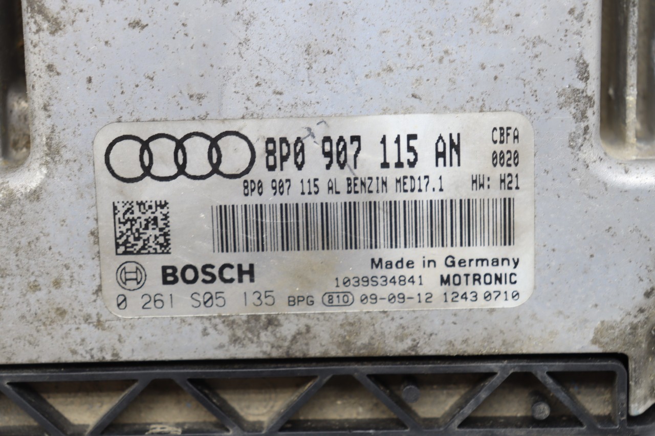 Specialized German is proud to offer this genuine used OEM 2010 Audi Engine Computer Module with OEM part number 8P0907115AN. Other possible part numbers include 8P0907115AN; 8P0907115AT. Please verify compatibility with your VIN or consult your technician before purchase.