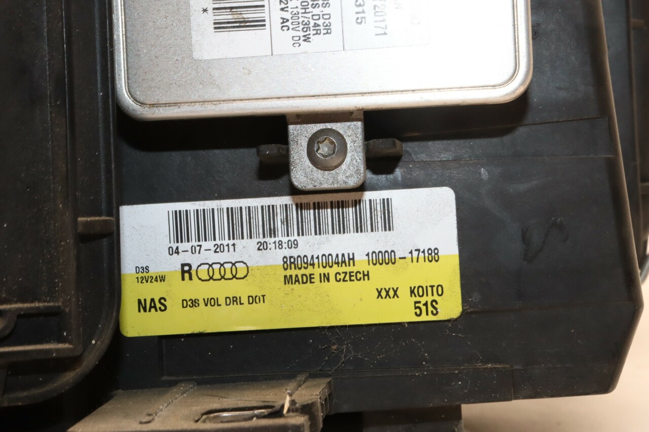 Specialized German is proud to offer this genuine used OEM 2012 Audi Headlight with OEM part number 8R0941004AH. Other possible part numbers include 8R0941004AH; 8R0941030AL. Please verify compatibility with your VIN or consult your technician before purchase.