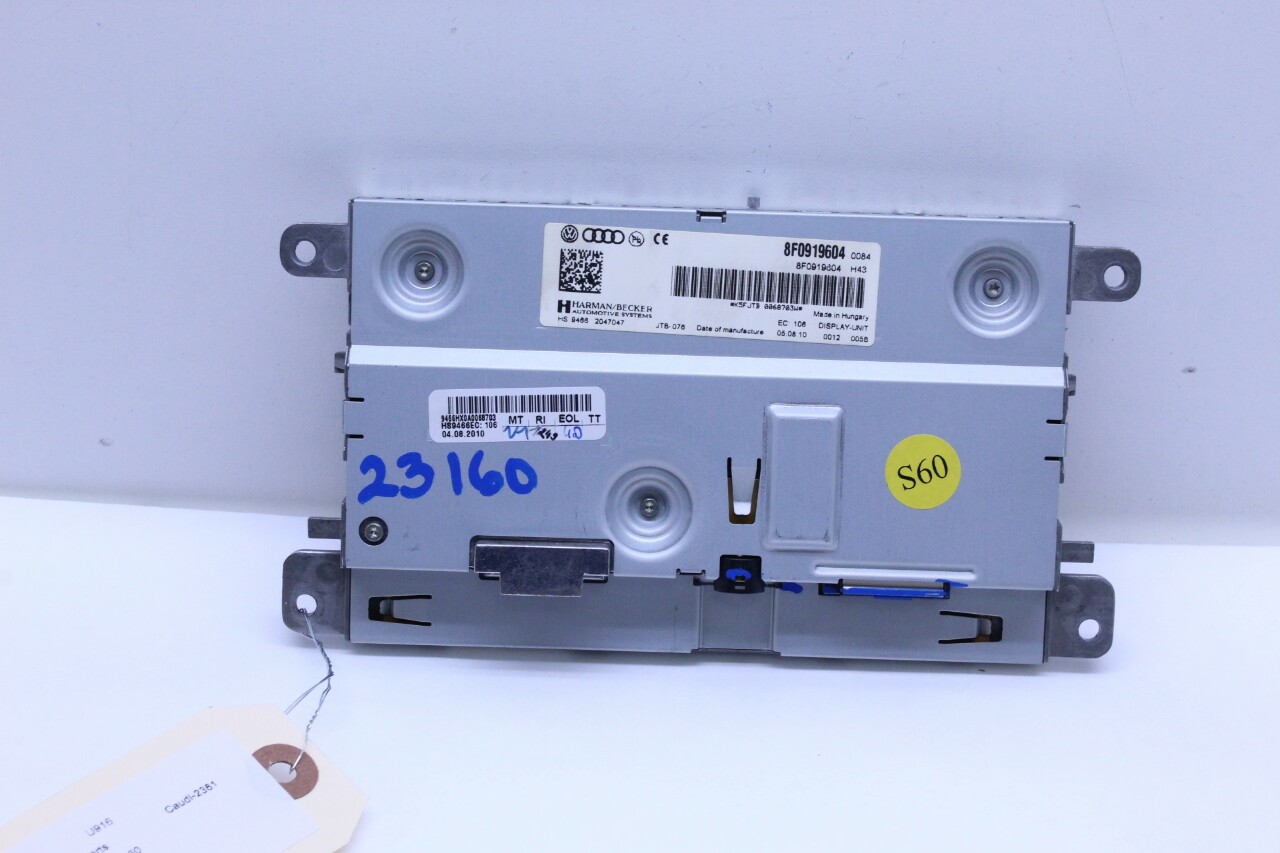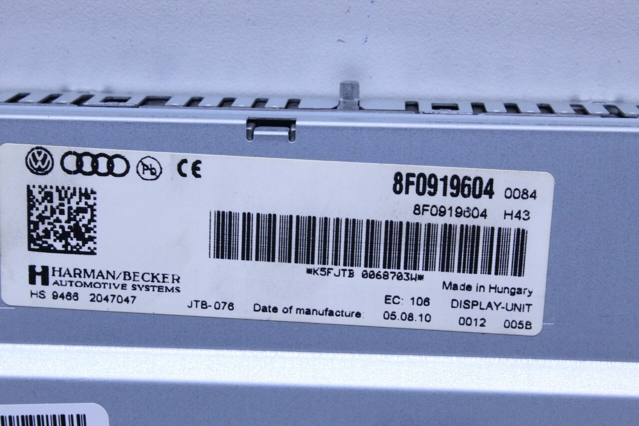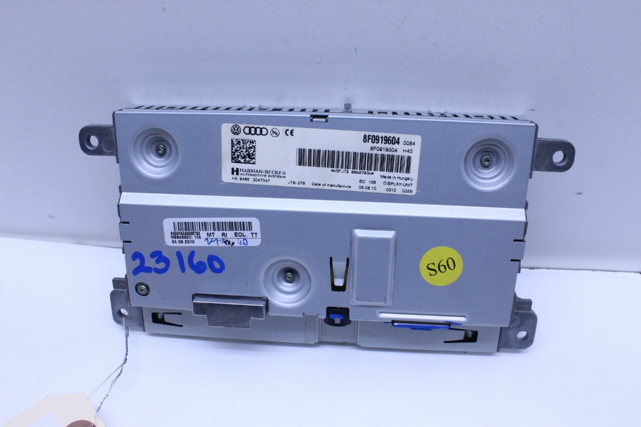 Specialized German is proud to offer this genuine used OEM 2011 Audi Display Monitor Screen with OEM part number 8F0919604. Other possible part numbers include 8F0919604. Please verify compatibility with your VIN or consult your technician before purchase.