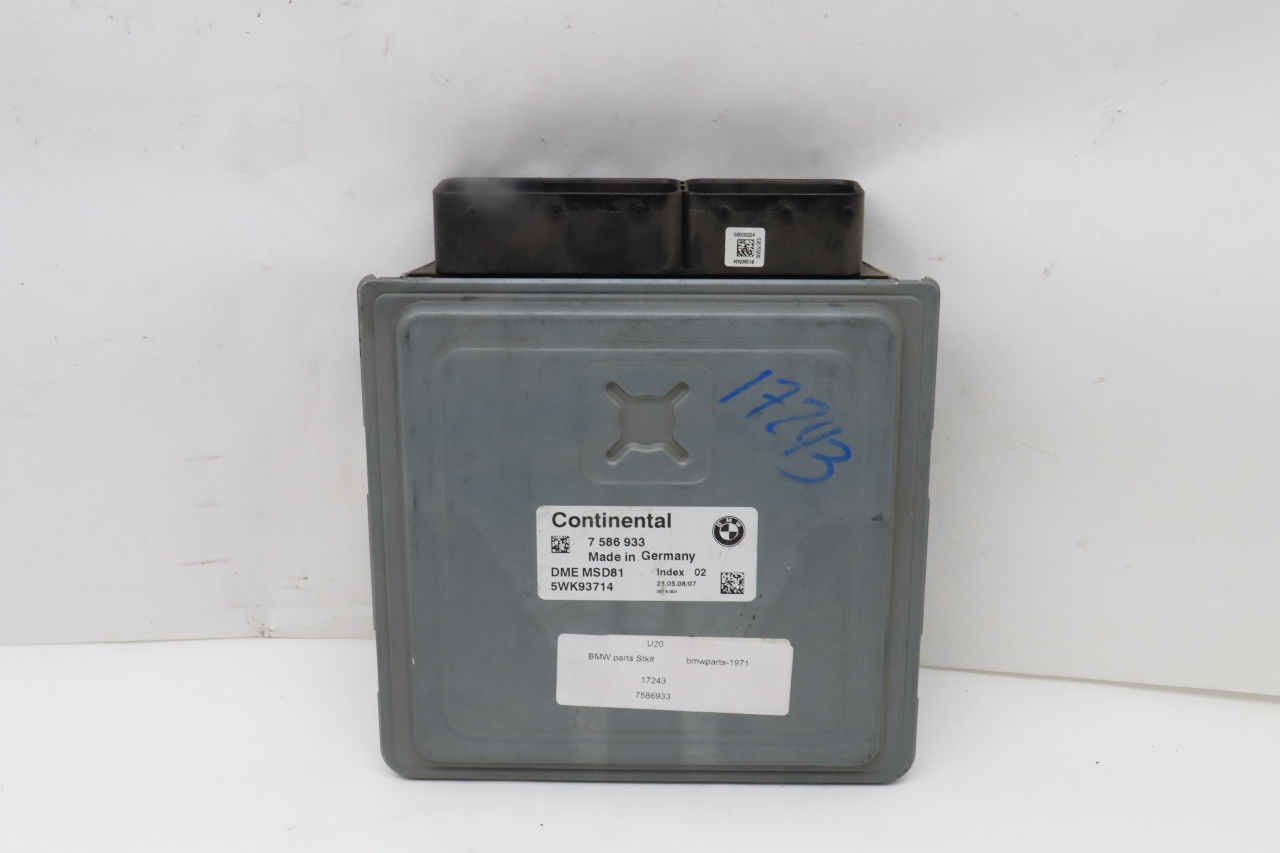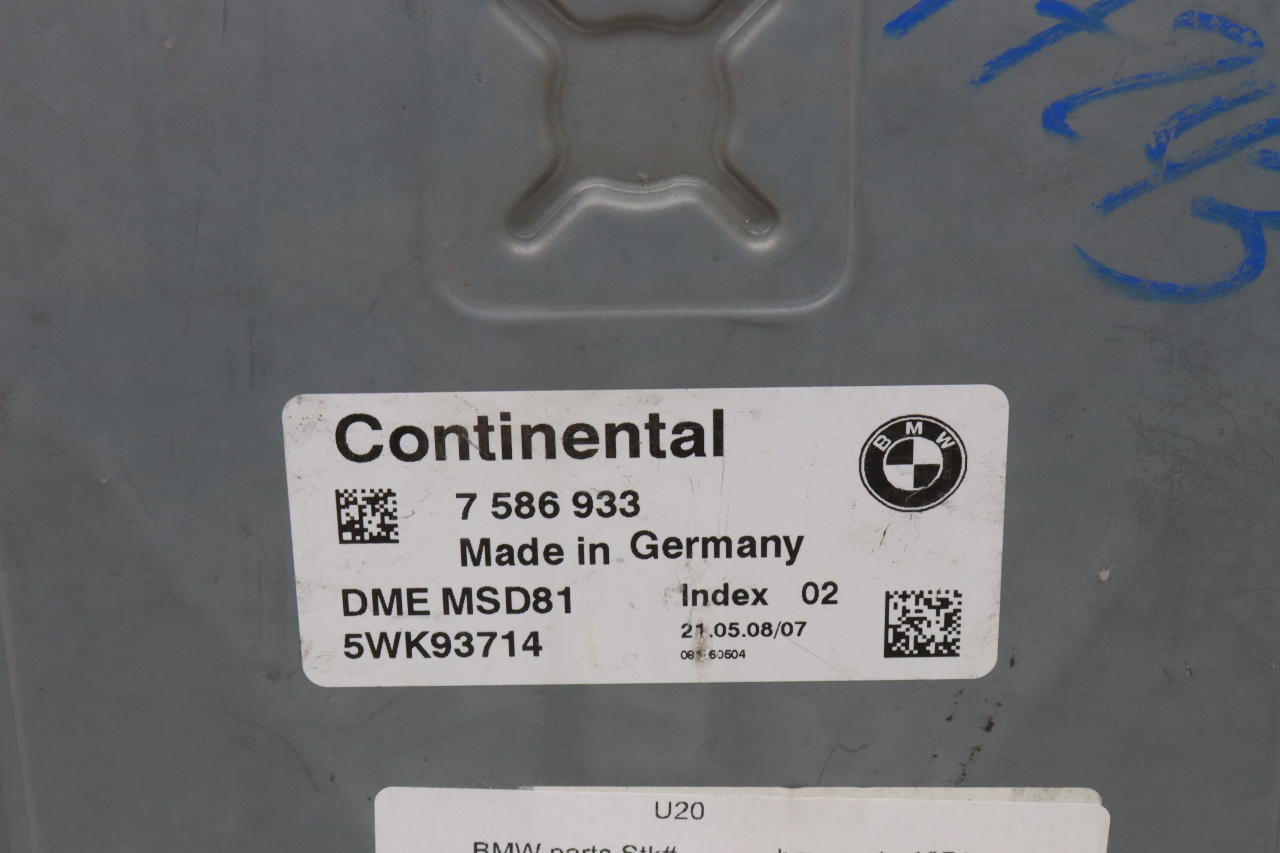 Specialized German is proud to offer this genuine used OEM 2008 BMW Engine Computer Module with OEM part number 12147586933. Other possible part numbers include 7586933l 12147586933; 12148619751. Please verify compatibility with your VIN or consult your technician before purchase.