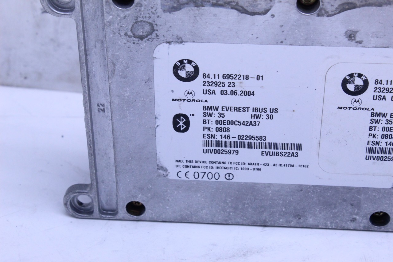 Specialized German is proud to offer this genuine used OEM 2004 BMW Telematics control unit with OEM part number 84116952218. Other possible part numbers include 6952218. Please verify compatibility with your VIN or consult your technician before purchase.