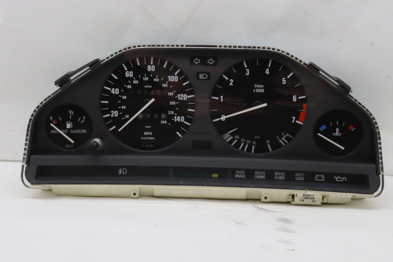 Specialized German is proud to offer this genuine used OEM 1989 BMW Speedometer with OEM part number 1381854.