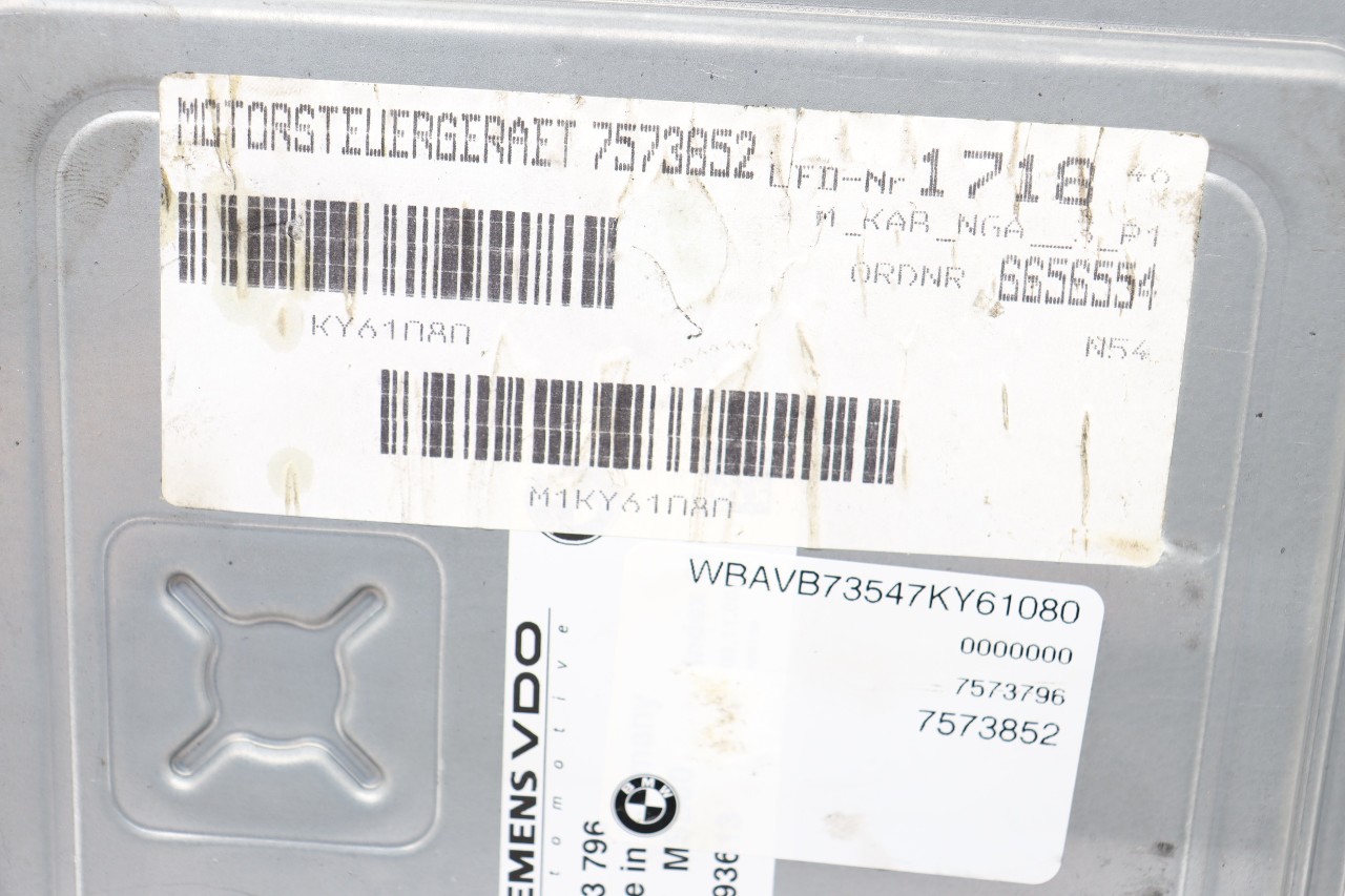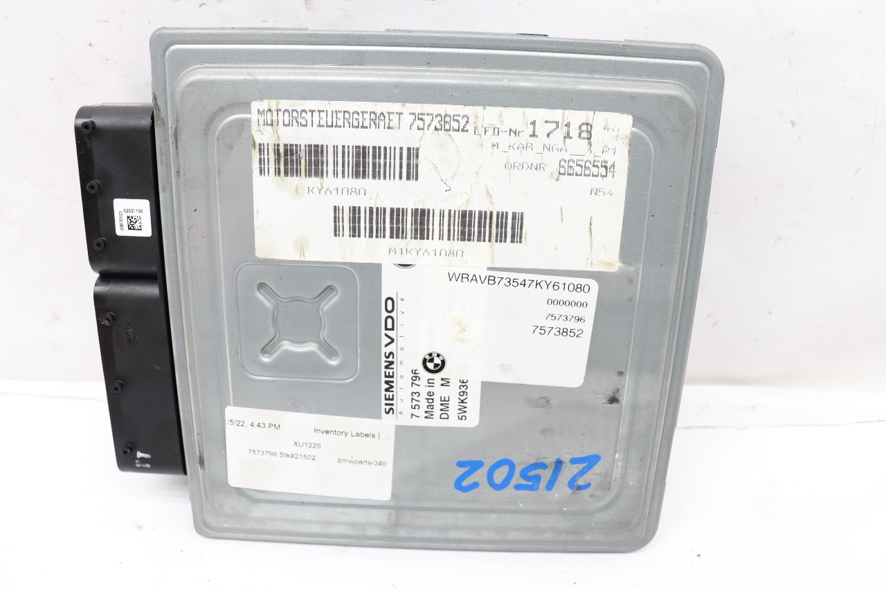 Specialized German is proud to offer this genuine used OEM 2007 BMW Engine Computer Module with OEM part number 12147573852. Other possible part numbers include 7573796; 12147573796; 7573852; 12147573852. Please verify compatibility with your VIN or consult your technician before purchase.