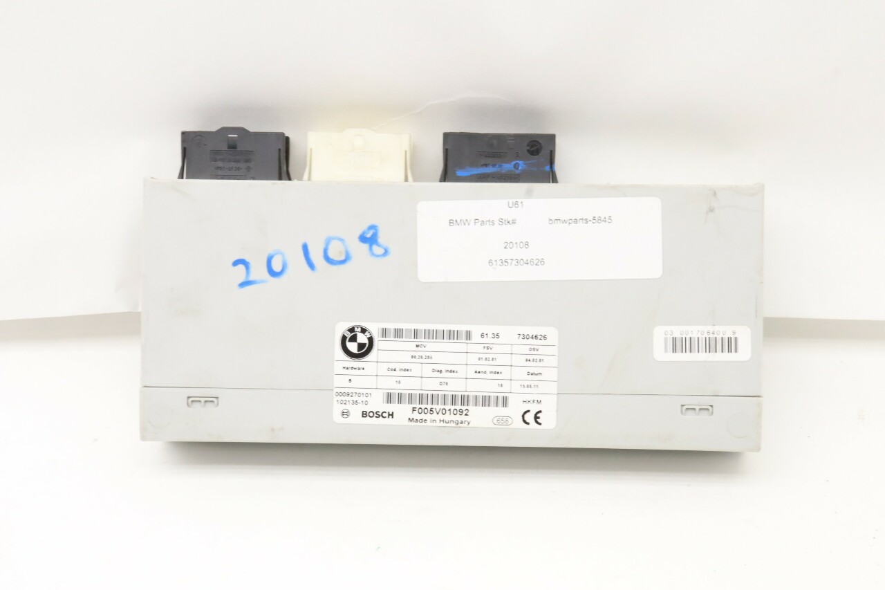 Specialized German is proud to offer this genuine used OEM 2012 BMW Tailgate Lift Control Unit with OEM part number 61357304626. Other possible part numbers include 7304626; 61357304626; 61357335274. Please verify compatibility with your VIN or consult your technician before purchase.