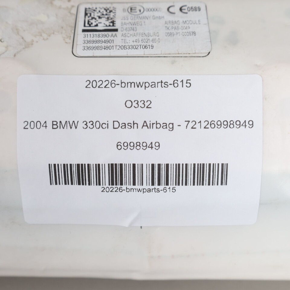 BMW 325i 330i M3 E46 Right Passenger Dash Airbag 72126998949 OEM