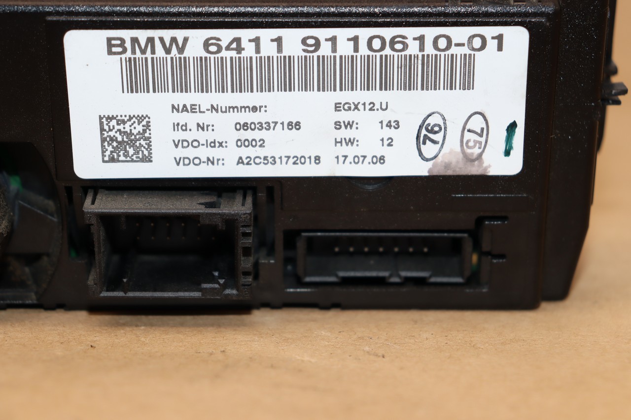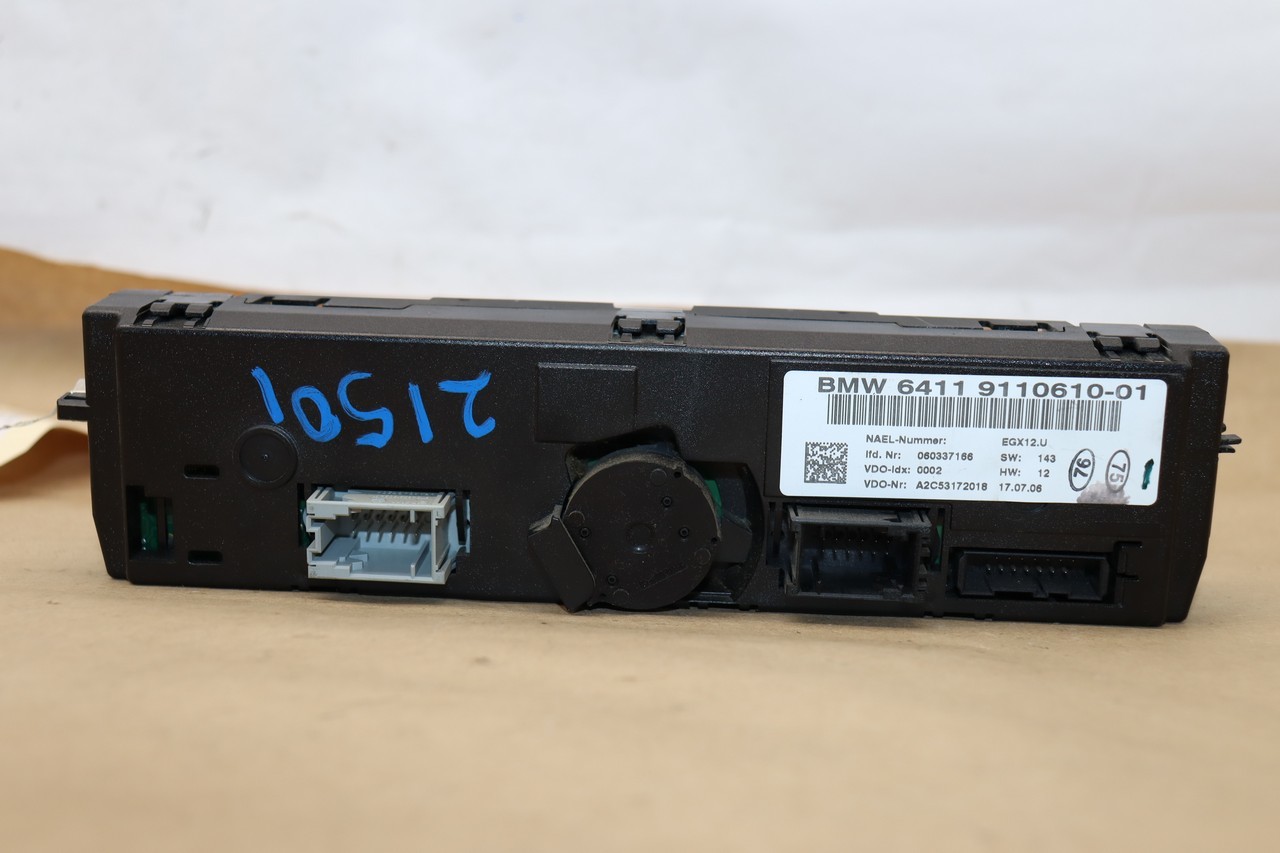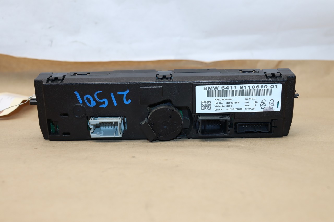 Specialized German is proud to offer this genuine used OEM 2006 BMW Temperature Control Panel with OEM part number 64119110610. Other possible part numbers include 9110610; 64119110610. Please verify compatibility with your VIN or consult your technician before purchase.