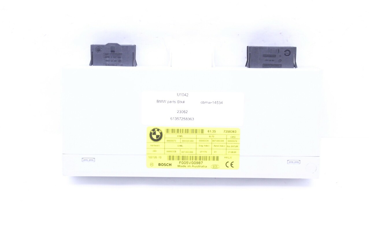 Specialized German is proud to offer this genuine used OEM 2010 BMW Liftgate Control Module with OEM part number 61357258363. Other possible part numbers include 7258363; 61357258363; 61357394649. Please verify compatibility with your VIN or consult your technician before purchase.