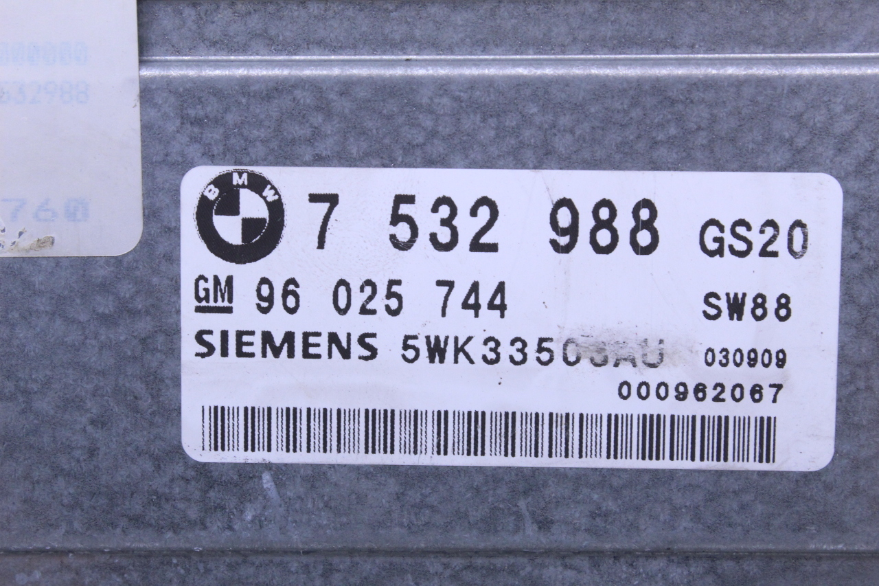 Specialized German is proud to offer this genuine used OEM 2004 BMW Transmission Control Module with OEM part number 24607532988. Other possible part numbers include 7532988; 7533760. Please verify compatibility with your VIN or consult your technician before purchase.