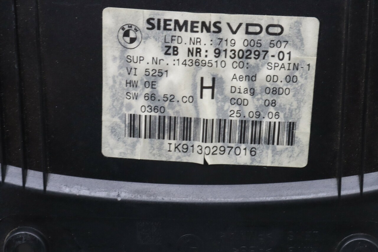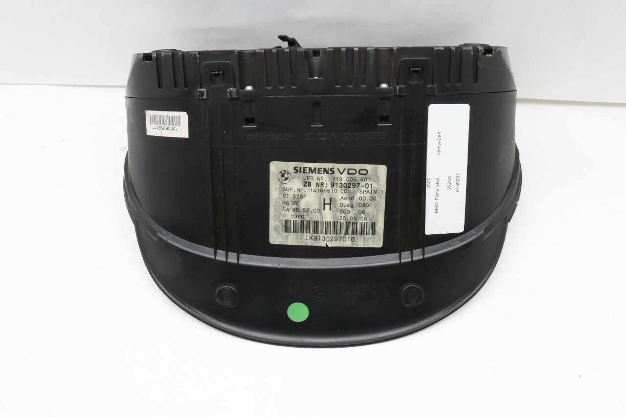 Specialized German is proud to offer this genuine used OEM 2007 BMW Speedometer with OEM part number 62109130297. Other possible part numbers include 9130297; 62109130297. Please verify compatibility with your VIN or consult your technician before purchase.