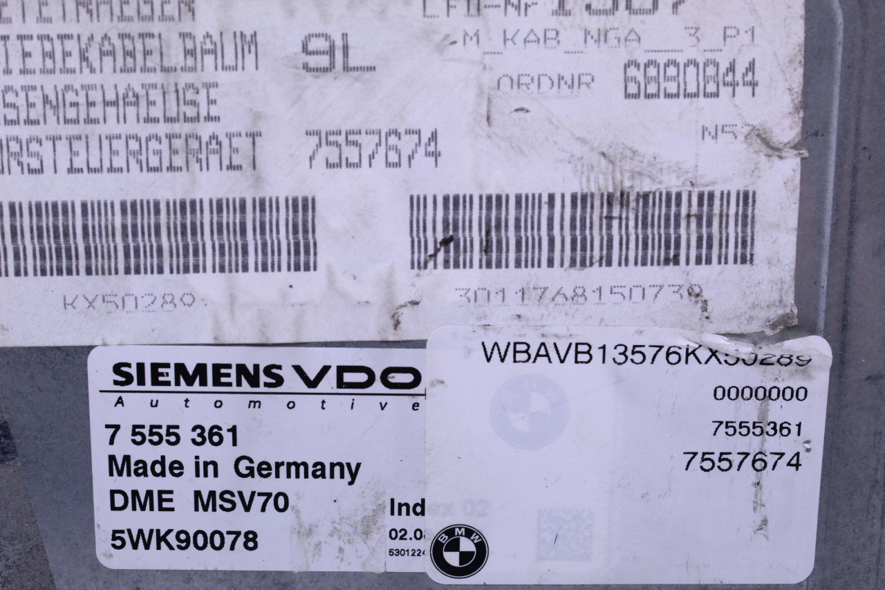 Specialized German is proud to offer this genuine used OEM 2006 BMW Engine Computer Module with OEM part number 12147555361. Other possible part numbers include 7555361. Please verify compatibility with your VIN or consult your technician before purchase.