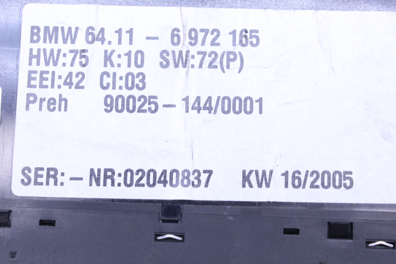 Specialized German is proud to offer this genuine used OEM 2005 BMW Temperature Control Panel with OEM part number 64116972165. Other possible part numbers include 6972165. Please verify compatibility with your VIN or consult your technician before purchase.