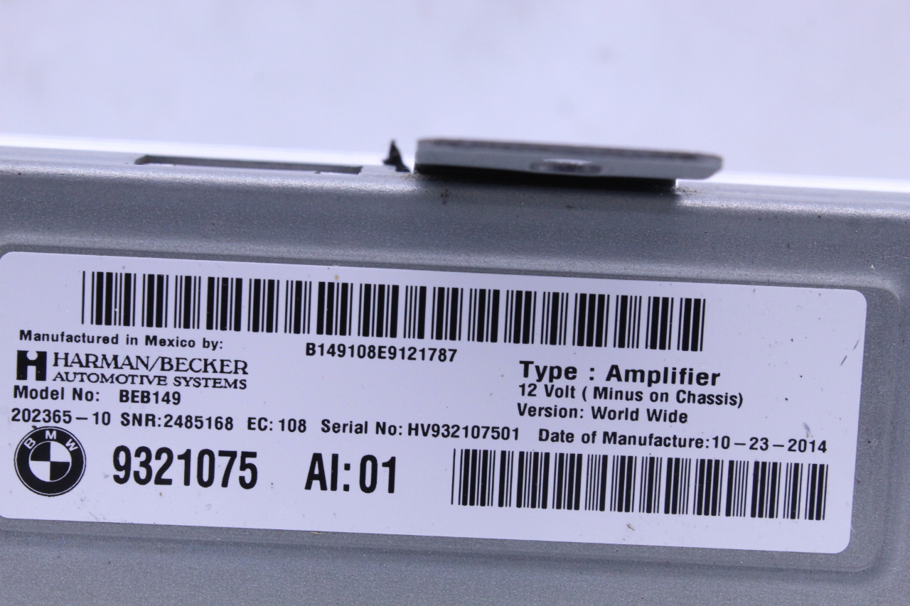 Specialized German is proud to offer this genuine used OEM 2015 BMW Amplifier with OEM part number 65129321075. Other possible part numbers include 9321075; 65129321075. Please verify compatibility with your VIN or consult your technician before purchase.