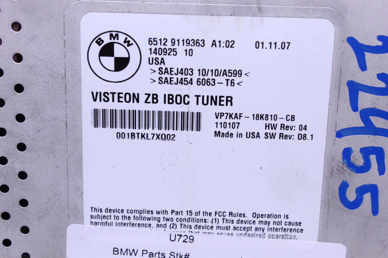 2007 BMW 530i Radio Stereo Tuner Receiver Module IBOC 65129119363 OEM