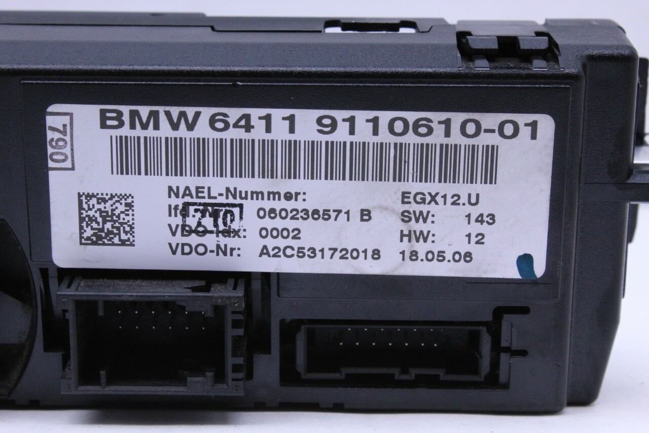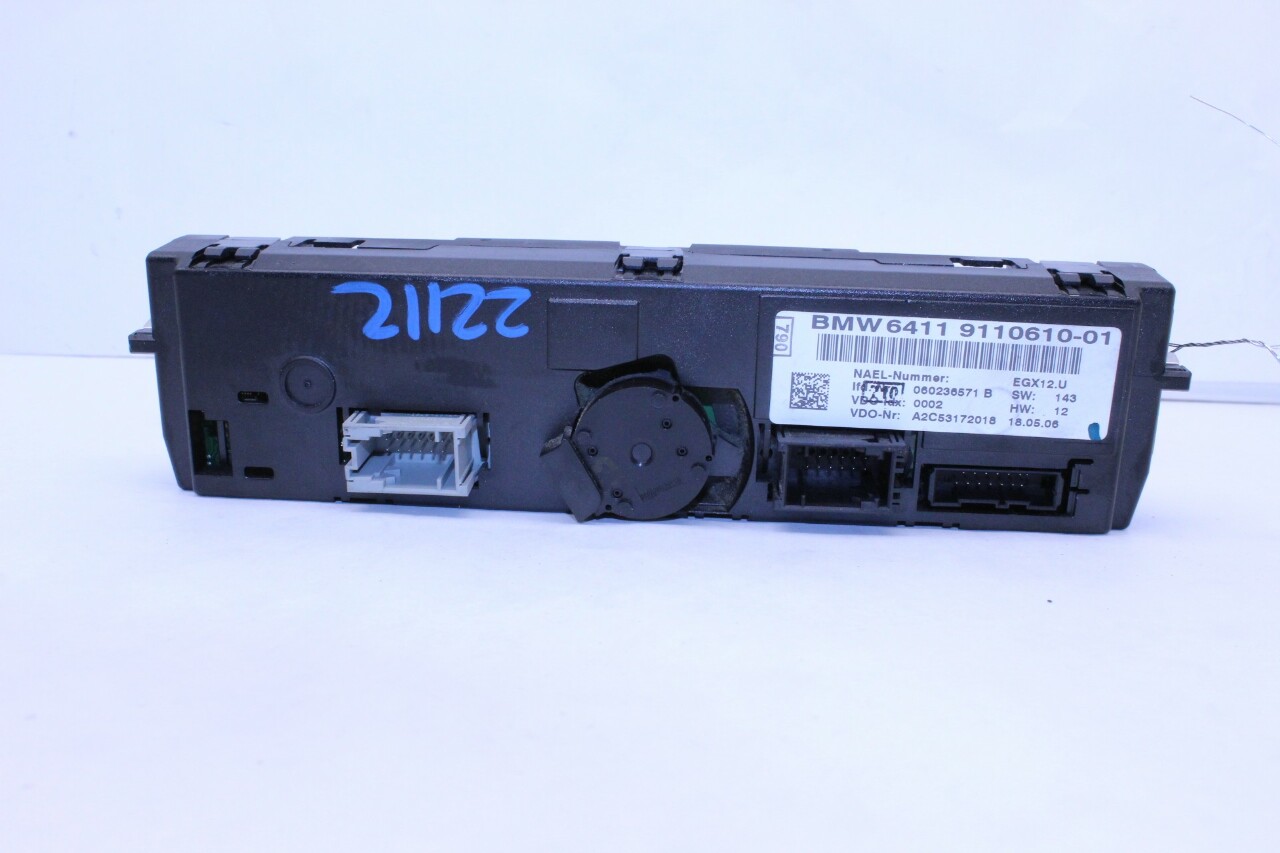 Specialized German is proud to offer this genuine used OEM 2006 BMW Temperature Control Panel with OEM part number 64119110610. Other possible part numbers include 9110610; 64119110610. Please verify compatibility with your VIN or consult your technician before purchase.