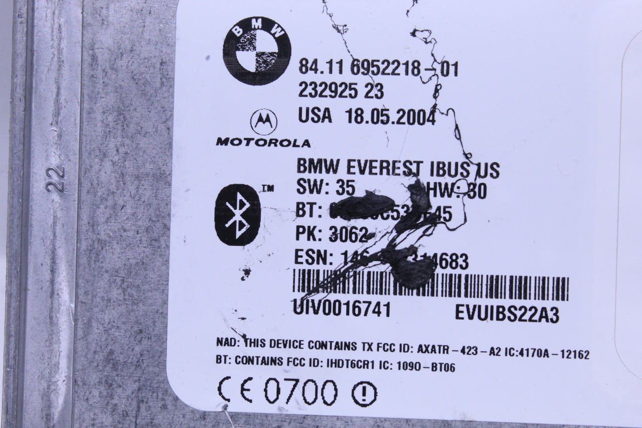 Specialized German is proud to offer this genuine used OEM 2004 BMW Telematics control unit with OEM part number 84116952218. Other possible part numbers include 6952218. Please verify compatibility with your VIN or consult your technician before purchase.