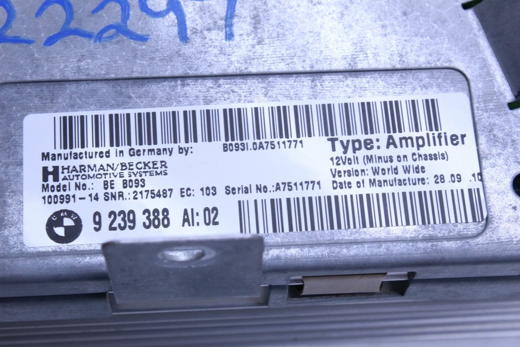 Specialized German is proud to offer this genuine used OEM 2011 BMW Amplifier with OEM part number 65129239388. Other possible part numbers include 9239388; 65129239388; 65129312592. Please verify compatibility with your VIN or consult your technician before purchase.