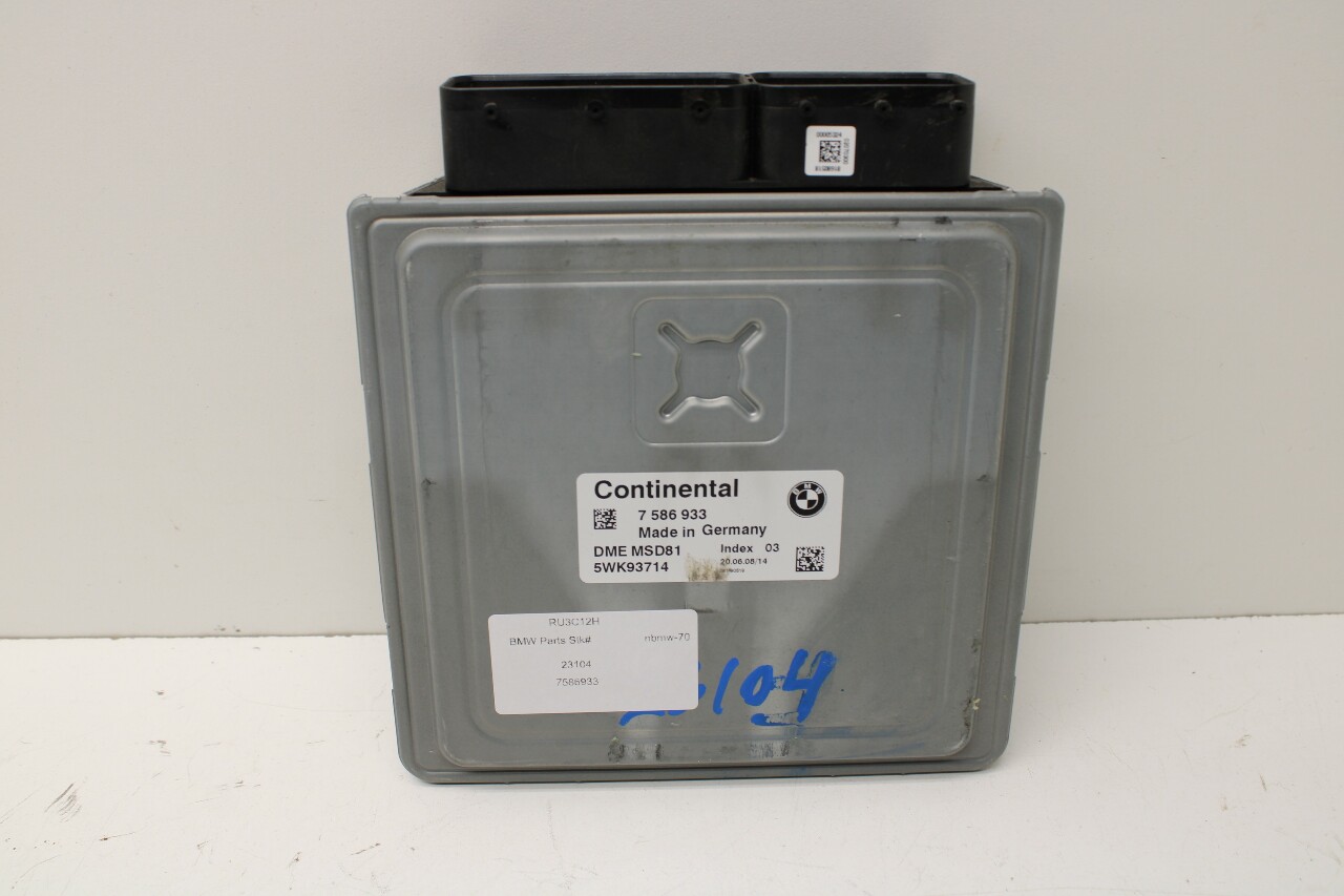 Specialized German is proud to offer this genuine used OEM 2008 BMW Engine Computer Module with OEM part number 12147586933. Other possible part numbers include 7586933l 12147586933; 12148619751. Please verify compatibility with your VIN or consult your technician before purchase.