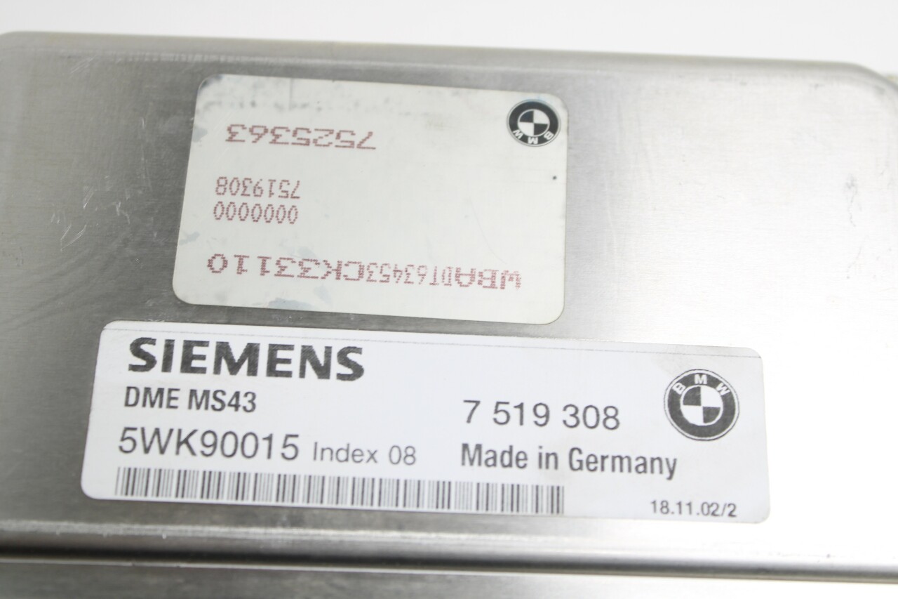 Specialized German is proud to offer this genuine used OEM 2003 BMW Engine Computer Module with OEM part number 12147519308. Other possible part numbers include 7519308; 7525363. Please verify compatibility with your VIN or consult your technician before purchase.