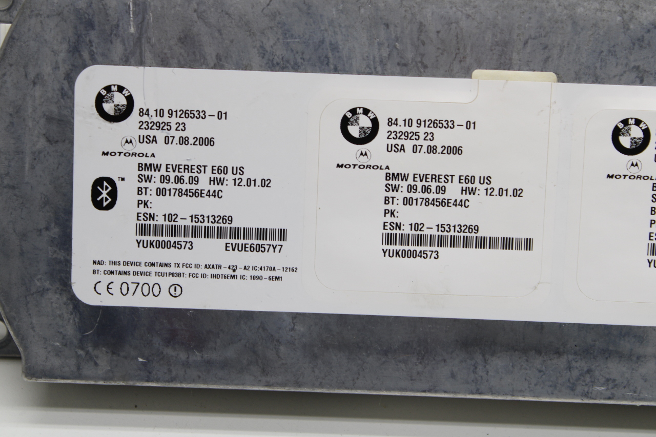 Specialized German is proud to offer this genuine used OEM 2007 BMW Telematics control unit with OEM part number 84109126533. Other possible part numbers include 9126533; 84109126533; 84109171348. Please verify compatibility with your VIN or consult your technician before purchase.