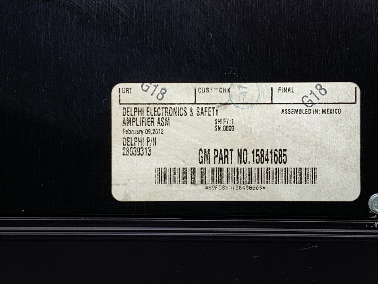Specialized German is proud to offer this genuine used OEM 2012 Chevrolet Amplifier with OEM part number 15841685.