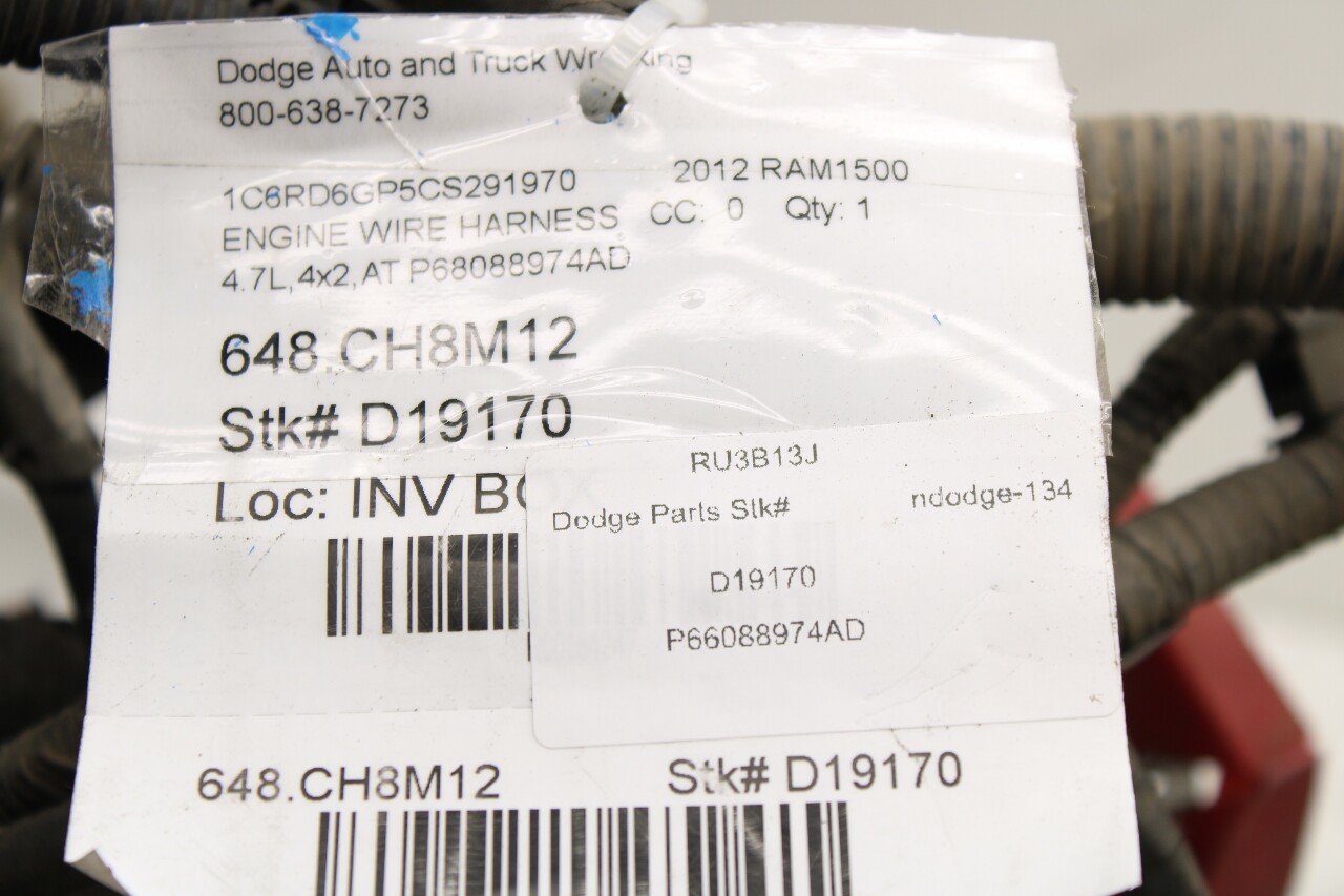 2012 Dodge Ram 1500 4.7 Engine Wire Harness Wiring - 68088974AD OEM2012 Dodge Ram 1500 4.7 Engine Wire Harness Wiring - 68088974AD OEM2012 Dodge Ram 1500 4.7 Engine Wire Harness Wiring - 68088974AD OEM2012 Dodge Ram 1500 4.7 Engine Wire Harness Wiring - 68088974AD OEM2012 Dodge Ram 1500 4.7 Engine Wire Harness Wiring - 68088974AD OEM