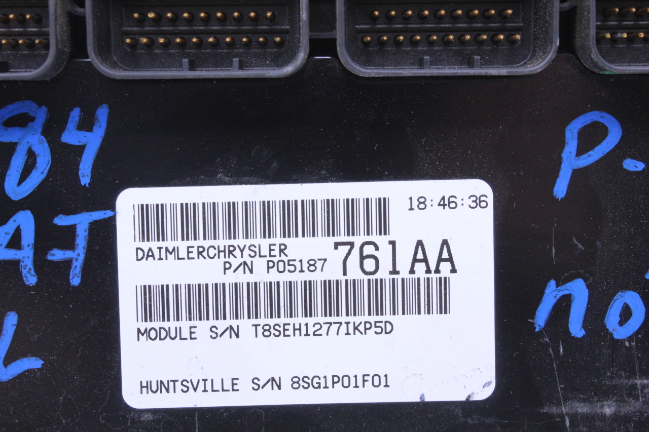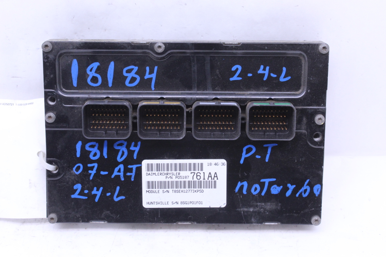 Specialized German is proud to offer this genuine used OEM 2007 Chrysler Engine Computer Module with OEM part number 5187761. Other possible part numbers include P05187761AA; 05187761AA. Please verify compatibility with your VIN or consult your technician before purchase.
