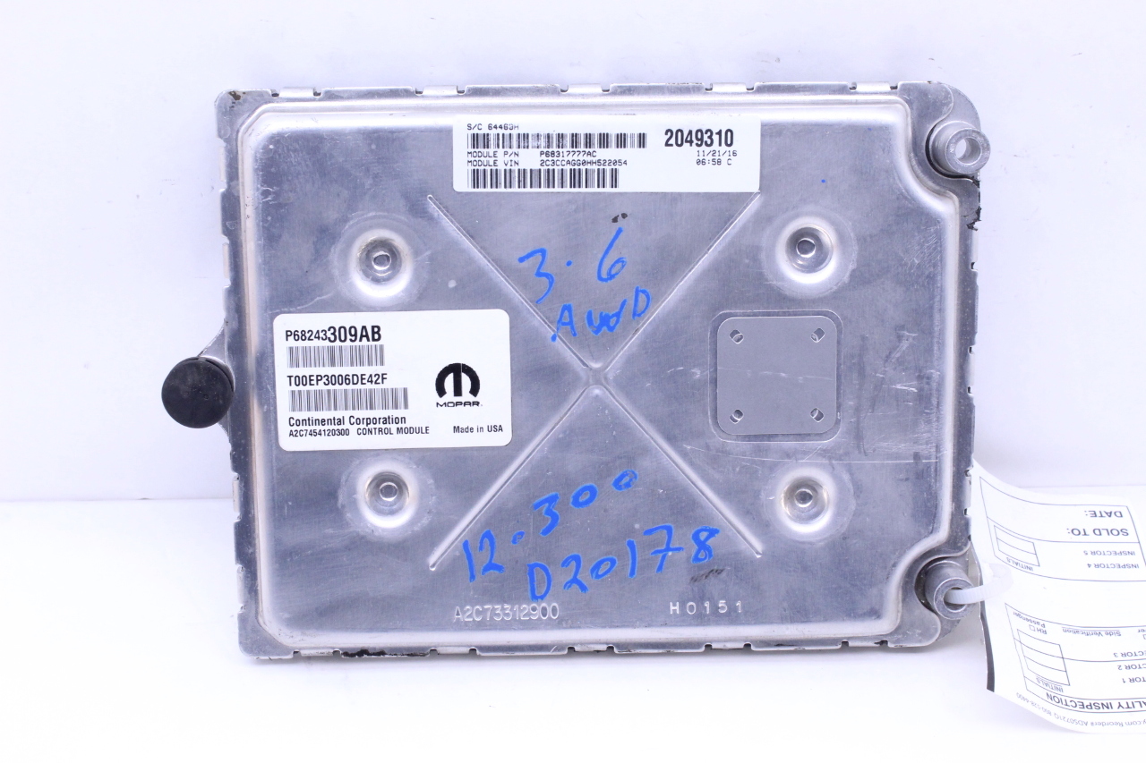 Specialized German is proud to offer this genuine used OEM 2017 Chrysler Engine Computer Module with OEM part number 68243309AB. Other possible part numbers include P68243309AB; 68243309. Please verify compatibility with your VIN or consult your technician before purchase.