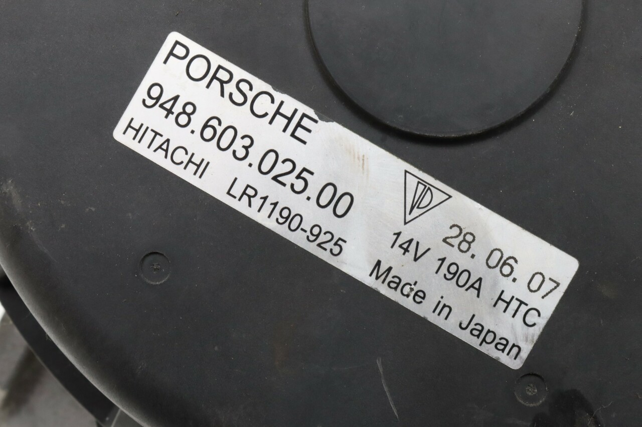 Specialized German is proud to offer this genuine used OEM 2008 Porsche Alternator with OEM part number 94860302500. Other possible part numbers include 94860302500. Please verify compatibility with your VIN or consult your technician before purchase.