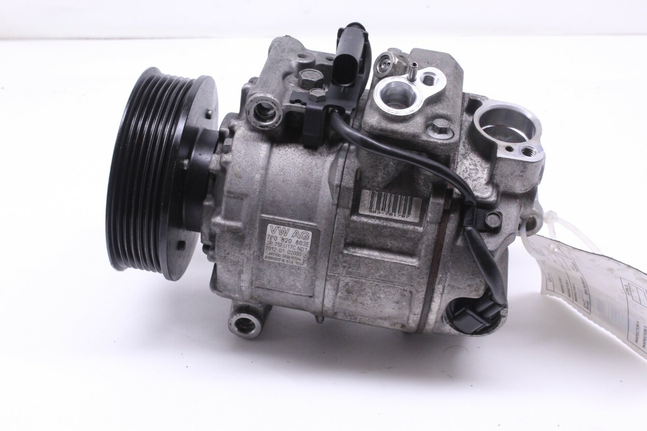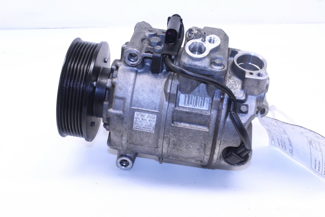 Specialized German is proud to offer this genuine used OEM 2012 Porsche A/C compressor with OEM part number 95812601200. Other possible part numbers include 7P0820803E; 7P0820803M; 95812601200. Please verify compatibility with your VIN or consult your technician before purchase.