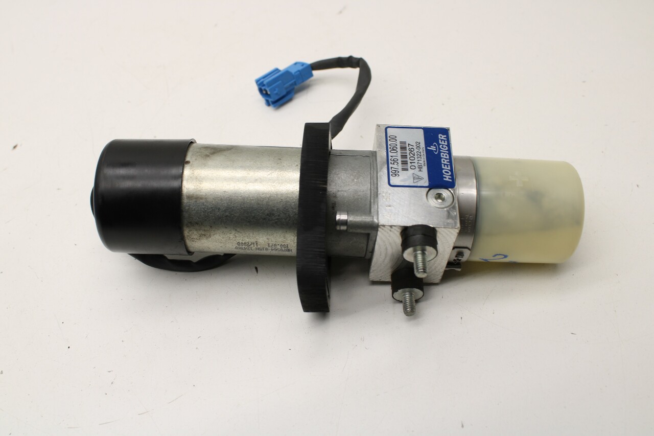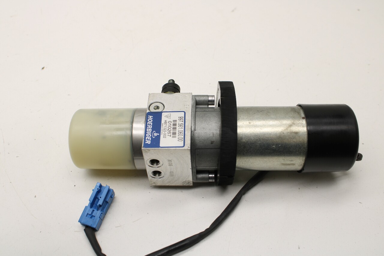 Specialized German is proud to offer this genuine used OEM 2009 Porsche Convertible Top Hydraulic Pump with OEM part number 99756106000. Other possible part numbers include 99756106000; 99656106002; 99656130701; 99756130700. Please verify compatibility with your VIN or consult your technician before purchase.